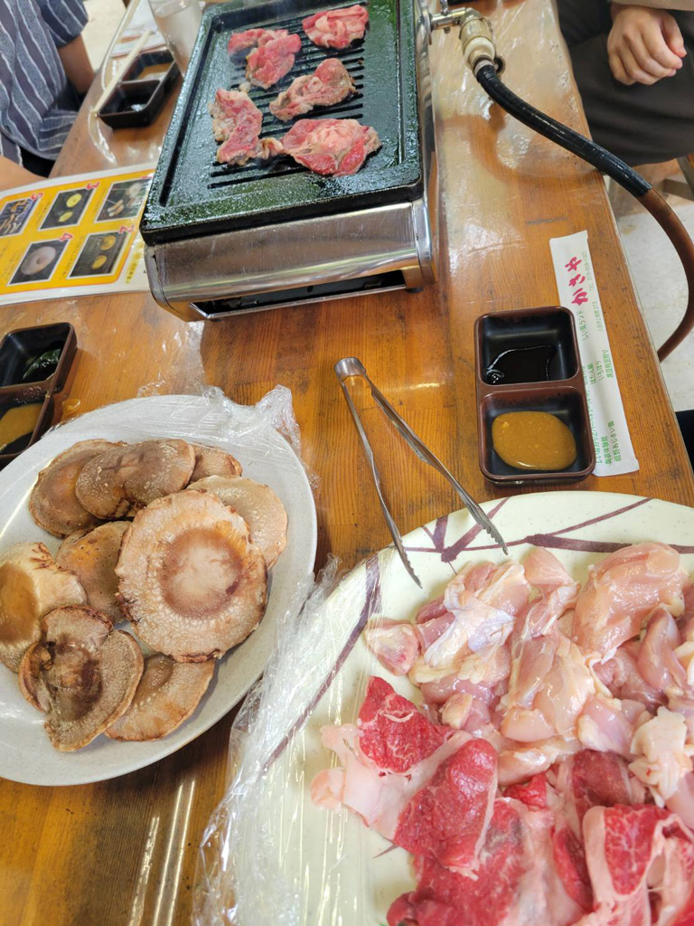 自然に囲まれた開放的な空間で、絶品しいたけやお肉を焼きながら交流が深まります。