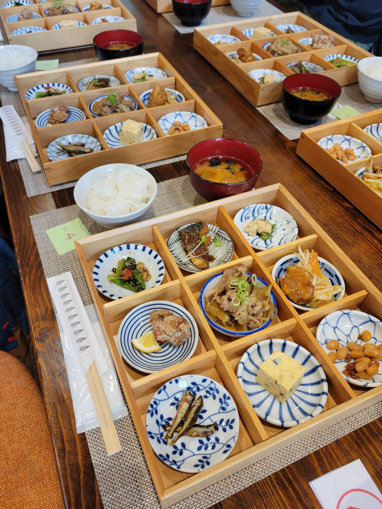 昼食は琵琶湖の地元料理をいただき、どちらのテーブルも「いただきます」の声からスタート!