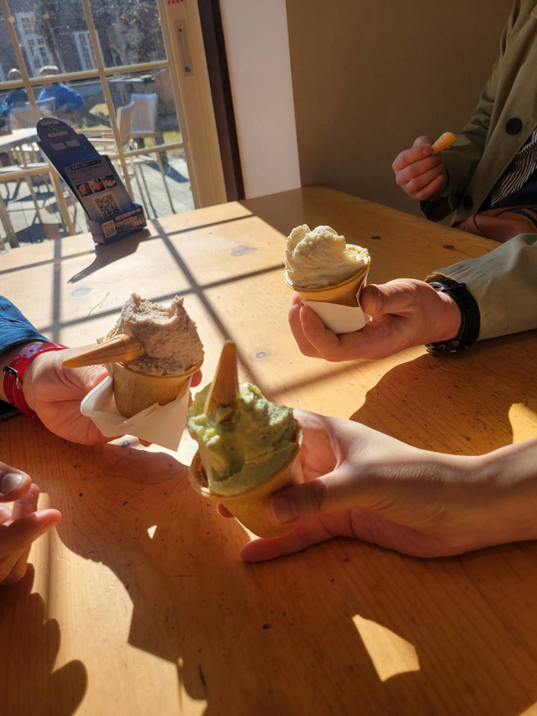 お食事のあとは2つのグループに分かれての散策では、自然の中で会話も弾みました🌿お土産を買ったり、ジェラートを食べたりと、笑顔があふれるひとときに。