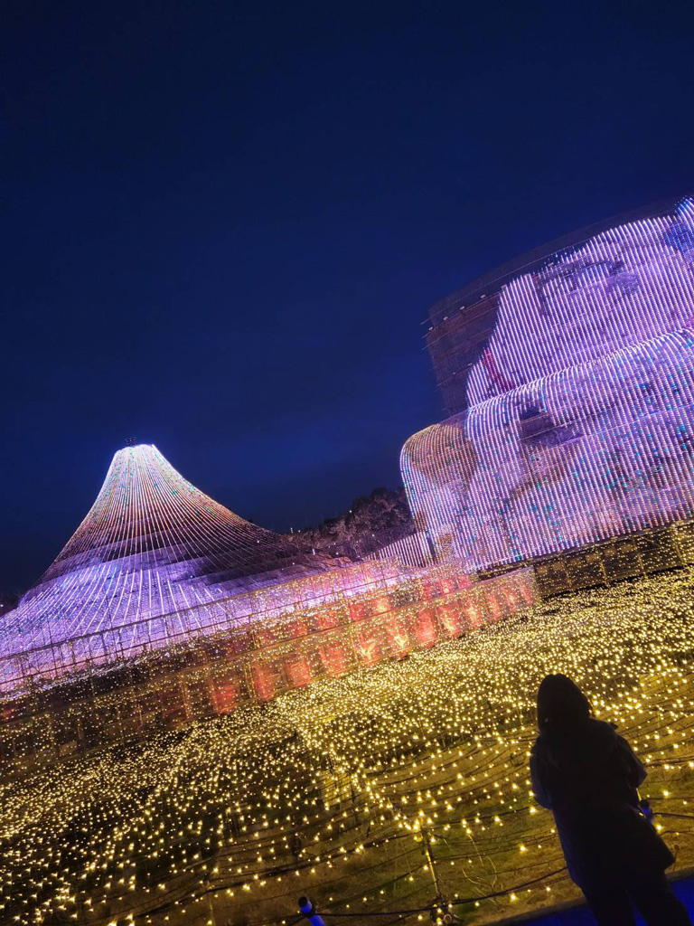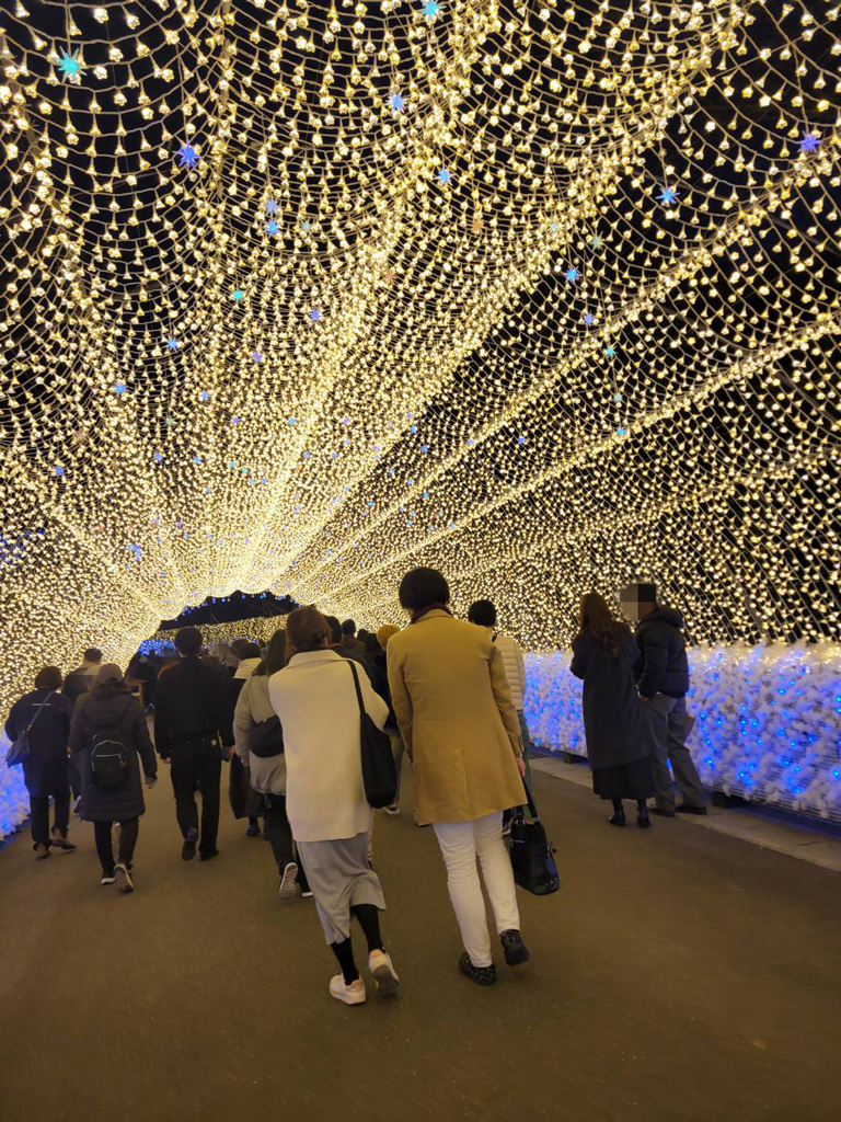 光に包まれたなばなの里のイルミネーションは、自然と心の距離を近づけてくれる特別な空間でした。