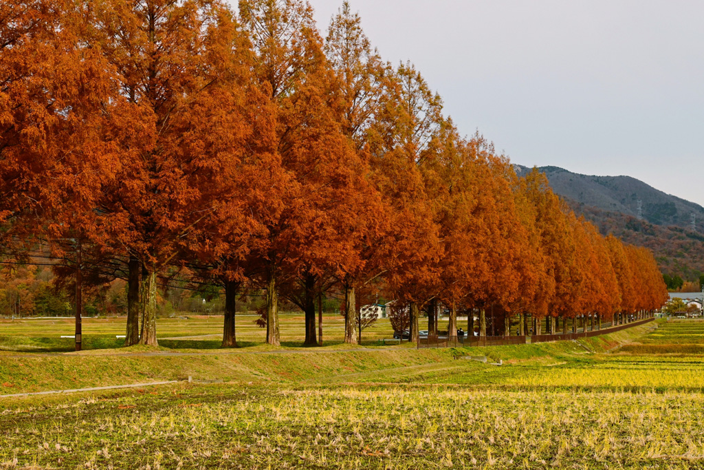 絶景!紅葉のメタセコイヤ並木でお散歩
