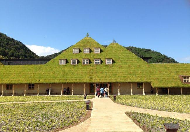 自然と調和した建築が美しいラコリーナ近江八幡は、バームクーヘンで有名なクラブハリエの施設。